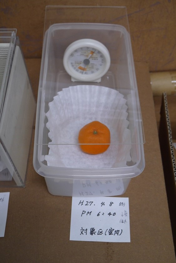 ここまでの実験では、百年炭蔵の蜜柑の水分保持と